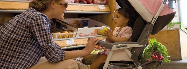 A stroller basket must be large and easy to reach even when a child is sitting on it. Always double check, especially when dealing with a lightweight stroller, that the basket’s load is not reduced if a child is sitting on the stroller.